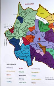 During our last research trip, we visited with Dr. Roulston at the Ulster Historical Foundation office in Newtownards near Belfast. He was very excited to have a copy of the newly printed Townland Atlas of Ulster to show us and without hesitation we purchased the copy to bring home for the LGDF’s research library. in our suitcase to save shipping costs. It is a remarkable resource. Each barony of Ulster is subdivided into counties and each county sub-region is further divided into townlands, which are small parcels of land occupied by a few families. Ireland contains 62,205 townlands.